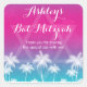 A modern tropical themed Bat Mitzvah favour sticker. Shown in aqua blue and pink.