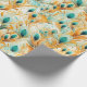 Tropical Teal Mint Orange Peacock Feathers Wrapping Paper