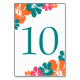 Tropical Teal Orange Pink Hibiscus Wedding Table Number