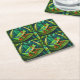 Tropical-themed coasters with vibrant green leaves and colorful red-eyed tree frogs. The design is lively and playful, with a lush jungle feel.