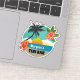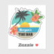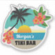 Tropical Tiki Bar or Beach Bar design with your custom text for name or bar name. Ocean sunset with palm tree and hibiscus flowers.