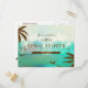 Tropical Turquoise Beach Bridal Shower Invite. A great wedding bridal shower invitation as a postcard for destination weddings or stay at home weddings. You can just be a beach lover or a fan of travel and think these would be the perfect wedding invitation for you! So modern and pretty these beach wedding invitations are sure to be a hit! You can see the ocean waves among the sandy beaches that hold palm trees and a sunset. Everything you could wish for on your honeymoon vacation are in these great tropical wedding invitations. Matching RSVPS and other wedding items available in my store. If you need something and dont see it please email me at jfarrell12 (at) gmail (dot) com