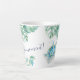 Add tropical island style to your home with my witty latte mug featuring my original hand painted watercolor sea turtle and monstera palm leaves in shades of blue, green and white. The words Seas The Moment are set in hand lettered script typography in navy blue. Personalise the words to Seas The Day or however you like. Makes a perfect holiday gift under $25 for the marine wildlife lover in your life. Watercolor Artwork by artist Victoria Rigali. To see more designs, visit Do Tell A Belle on Zazzle