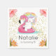 Splish Splash with lots of fun and cuteness with this precious tropical unicorn themed birthday napkin. Perfect for summer parties, pool parties, baby shower, etc. Features tropical leaves and flowers in the corners with gold accents. A sweet little unicorn in a pool floating is in the centre of the napkin. Clipart by HandMek.