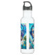Tropical Vibes Female DJ Illustration Personalised Stainless Steel Water Bottle. Stay hydrated with this stylish and cool design featuring a female DJ with blue hair surrounded by tropical flowers and foliage. Add some tropical vibes to your daily life with this colourful water bottle. Personalise it with your name and make it uniquely yours.
