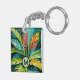 This design captures the lush beauty of tropical foliage in a bold, stylised manner. The composition features a striking arrangement of diverse plant leaves, including broad monstera leaves, slender palm fronds, and vivid heliconia. The colour palette is rich and eye-catching, with shades of green ranging from lime to emerald, accented by bright oranges, yellows, and pinks. Personalise with an initial.