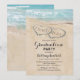 Beach graduate party invitations featuring a summer tropical beach island background, a vintage sandy beach with two hearts in the shoreline, the class year and a modern graduation party template.