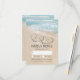 Beach destination wedding menu response cards featuring a summer tropical beach island background, a vintage sandy beach with two hearts in the shoreline, your initials and a wedding food entree rsvp template.