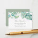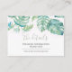 Designed to coordinate with my tropical monstera palm leaves wedding collection, this elegant botanical guest details card features a top border of watercolor foliage in shades of blue, turquoise and green above your wedding website details in a small 3.5 x 2 size . Add your custom text using the fields provided and use the Customise function to adjust fonts, sizes and spacing. To see matching designs visit DoTellABelle Invites on Zazzle