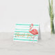 Tropical pink watercolor flamingo with mint stripes and gold glitter thank you.