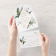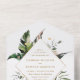 Tropical Watercolor Foliage Gold Wedding All In One Invitation