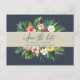Beautiful modern Tropical watercolor foliage save the date postcard. Part of a summer wedding celebration collection. Navy backer can be changed.