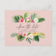 Tropical watercolor foliage script save the date announcement postcard