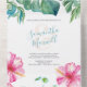 Tropical Watercolor Hawaii Wedding All In One Invitation