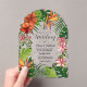 Set a vibrant tone for your island celebration with this stunning clear acrylic wedding invitation. Featuring hand-painted watercolor Hawaiian flowers and leaves, including bright hibiscus and exotic birds of paradise, this modern arch-shaped design is perfect for a destination wedding, beach ceremony, or tropical-themed event. The elegant botanical frame surrounds your personalized details for a look that is both artistic and sophisticated.