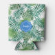 Tropical watercolor palm leaves pattern monogram can cooler