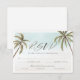 Celebrate your special romantic wedding with our elegant modern tropical watercolor palm tree wedding RSVP reply by wedding design. Our design features our hand-painted watercolor palm trees and blue sky and shady beach gradient background. RSVP details are beautifully designed to create this simple yet elegant design. All artwork is hand-painted artwork by Moodthology Papery.