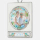 Commemorate your tropical wedding with this elegant floral hibiscus Christmas ornament. Blue hibiscus flowers and green banana leaves border your wedding photo in a beautiful tropical wreath. Add the year for a finishing touch. Blue and green sea turtles can be resized.