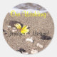 Personalise these wedding envelope seals which feature a plumeria washed ashore among pieces of coral on a tropical beach.