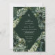 Bring a moody elegance to your destination wedding with this dark green tropical invitation. Featuring vibrant tropical leaves against a rich green background, this invitation is ideal for a botanical inspired or beach wedding. Customise with your wedding details to create a unique invitation.