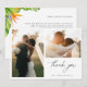Modern script photo, tropical wedding thank you card. Features, 2 photo spaces on front.