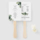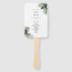 Keep guests cool with this tropical program fan, featuring green botanical leaves. Perfect for a destination or beach wedding, this fan includes a handle and provides a stylish way to showcase your wedding details.