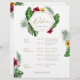 Wedding timeline itinerary with tropical design, greenery palm leaves, yellow & red floral and gold geometrics.