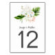White and blush pink exotic watercolor tropical orchids, magnolias, white king proteas, and dark greenery table number cards. Please Note: You must create these cards one at a time and add them to your cart individually.