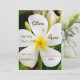 A marriage is the start of "new beginnings". The Plumeria or also known as Frangipani, is the Hawaiian symbol of "positivity" and "new beginnings". A unique wedding invitation featuring a close up photograph of a white Plumeria flower with tropical leaves and buds behind it. In Hawaii, this flower is used for making lei necklaces because of their shape and sweet fragrance.