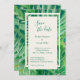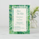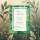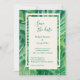 This wedding safe the date invitation card comes in different sizes, shapes and papers. It is customisable with your Intro, names and or monograms, occasion, date and address. It shows a harmonious blend of emerald greenery tropical leaves, monstera, palm leaves from the nature and it has fitting green tones and typography The minimal beige overlay is for your customisation and on the backside for your monograms. Hobinishop