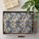 A vibrant pattern featuring tropical yellow hibiscus flowers with lush green leaves on a textured blue background. This pattern showcases bold and vibrant yellow hibiscus flowers with intricate green leaves set against a textured blue background. The combination of tropical florals and artistic textures creates an exotic, eye-catching design. Perfect for gift giving, decoupage or other crafts.