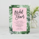 Celebrate your summer shower in the tropics! This design features watercolor palms, flamingo pink and a modern hand lettered font.