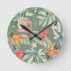 Tropics Flower Foliage Fantasy with Monogram Round Clock