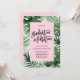 This tropical graduation party invitation design features fun summer watercolor palms paired with a flirty pink background and a modern brushed font.