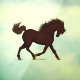 A brown trotting horse or pony. This work began as a doodle in a school notebook and became one of Mozartini's best sellers for over a decade.