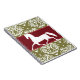 This classic and stylish equestrian christmas or holiday horse themed design features a trotting white horse with a pretty damask pattern and red banner across the middle for a very festive look. This equine gift is perfect for people who love horses of any age!
