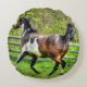 Trotting Pinto Paint Stallion on a Horse Ranch Round Cushion