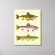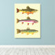 The beautiful colours of the Brook Trout, the Rainbow Trout and the Brown Trout. Pictures are from three original watercolor paintings by Mr. Trout Whiskers. Perfect for your home, office, lodge, cabin and other interiors. Makes a great gift for fly fishing fans and those who love fishing or ichthyology. See more fish designs at the Trout Whiskers shop.