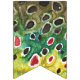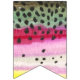 The party flags features the skins of three trout - the Brook Trout, salvelinus fontinalis; the Rainbow Trout, oncorhynchus mykiss; and, the Brown Trout, salmo trutta. Each flag's art is from an original watercolor painting by Mr. Trout Whiskers. These flags are wonderful for a fisherman's celebration - a birthday, Father's Day or other special time - and - great for a fly fishing shop or store - and so many more places, too!