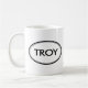 Check out this Troy mug! Is your name Troy? Or do you have a husband, boyfriend, male family member or male friend named Troy? If so, this "Name Stamp" mug is exactly the gift that you're looking for! The design features "Troy" in big black lettering surrounded by two ovals, one thin and one thick.