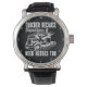 This appreciative wall clock highlights the crucial, symbiotic relationship between truckers and dispatchers. Against a black background with a white rim, it features a semi-truck graphic and the impactful text: "TRUCKER BECAUSE Dispatchers NEED HEROES TOO". It's an excellent gift for any truck driver who takes pride in being the hero that keeps the wheels of commerce turning. The design tool can also be used to add custom text if you want your name or company on this clock. You can customise the colour of the frame to any colour you desire by going into the design tool.