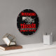 This bold wall clock serves as a clear warning from a no-nonsense truck driver. Against a black background with a red rim, it features a semi-truck and the direct message: "WARNING THIS TRUCKER DOES NOT PLAY WELL WITH STUPID PEOPLE". It's a straightforward and humourous statement for any trucker who values efficiency and intelligence on the road. The design tool can also be used to add custom text if you want your name or company on this clock. You can customise the colour of the frame to any colour you desire by going into the design tool.