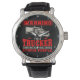 This bold wall clock serves as a clear warning from a no-nonsense truck driver. Against a black background with a red rim, it features a semi-truck and the direct message: "WARNING THIS TRUCKER DOES NOT PLAY WELL WITH STUPID PEOPLE". It's a straightforward and humourous statement for any trucker who values efficiency and intelligence on the road. The design tool can also be used to add custom text if you want your name or company on this clock. You can customise the colour of the frame to any colour you desire by going into the design tool.
