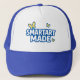 This stylish trucker cap features a vibrant blue and white design with a playful message. The front panel showcases the text "SMARTART MADE" in bold, blue lettering, accompanied by cheerful yellow butterflies. The classic trucker cap design includes a breatheable mesh back for comfort and an adjustable snap closure for a perfect fit. Whether you're heading to a casual outing, a creative event, or just want to add a touch of fun to your everyday look, this cap is the perfect accessory.