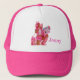 Add a pop of colour and personality to your outfit with this vibrant pink and white trucker hat featuring a playful cartoon design. Perfect for anyone who wants to add a fun and whimsical touch to their look. The adjustable snapback closure ensures a comfortable fit for all head sizes. Make a statement with this unique and eye-catching hat - order now and get ready to turn heads!"