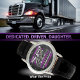 This touching wall clock honours the immense sacrifice a truck driver father makes for his family. Against a black background with a purple rim, it features a semi-truck graphic and the heartfelt text: "TRUCKER'S DAUGHTER My Dad RISKS HIS LIFE FOR STRANGERS JUST IMAGINE WHAT HE'D DO FOR ME". It's a deeply meaningful gift for a daughter to show pride in her trucker dad's dedication. The design tool can also be used to add custom text if you want your name or company on this clock. You can customise the colour of the frame to any colour you desire by going into the design tool.