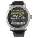This sweet wall clock proudly celebrates the special bond between a granddaughter and her trucker grandparent. Against a black background with a warm yellow rim, it features a small illustration of a yellow and white semi-truck. The heartwarming text declares: "I'm not just GRANDPA'S LITTLE GIRL I'M A Trucker's GRANDDAUGHTER". It's a perfect gift to show a granddaughter's pride in her grandparent's profession. The design tool can also be used to add custom text if you want your name or company on this clock. You can customise the colour of the frame to any colour you desire by going into the design tool.