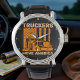 This patriotic wall clock powerfully celebrates the vital role of truck drivers in the United States. Against a black background with an orange-brown rim, it features a semi-truck prominently positioned in front of a distressed American flag design. The words "TRUCKERS MOVE AMERICA" are boldly displayed in orange, emphasising the essential contribution of these professionals. This clock is an excellent gift to honour the dedication of American truck drivers. The design tool can also be used to add custom text if you want your name or company on this clock. You can customise the colour of the frame to any colour you desire by going into the design tool.