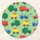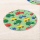 Trucks Cars Cute 1st Birthday Party Theme Round Paper Coaster