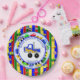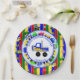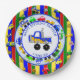 Personalised Blue, green, yellow, red cars, tractors, trucks and traffic sign boy's birthday party paper plates.